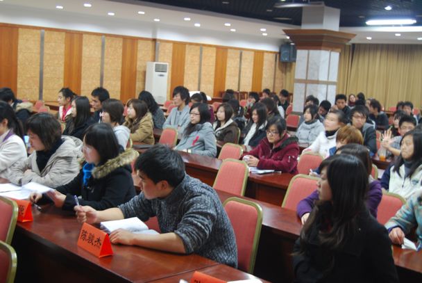 本次会议内容明确,就学生会招新后各部门的职责定位和今后的工作方向进行了简要的说明。会议首先由校团委副书记乐潘敏老师发表讲话。乐老师首先对新干事的加入表示了最诚挚的欢迎,同时表示希望新鲜血液的加入能给院学生会带来新的活力与生机;在对各部门及部长做了简单的评价后,乐老师对在座的学生干部提出了几点要求:一是希望学生干部做到三个意识:意识学生干部为学院服务的性质;意识学生干部应该具备怎样的素质;意识学生干部应有怎样的心态。二是要求学生干部在学习生活中要树立良好的形象。三是明确学生干部的职责,提高责任心。四是办事一定要讲原则。