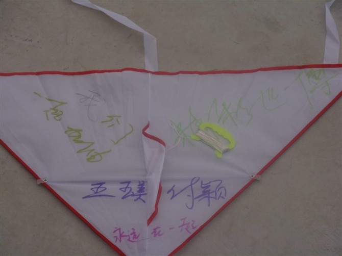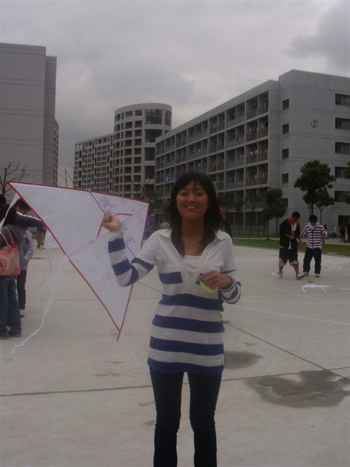 在此活动期间,我们采访了此次活动的宣传部负责人,她说此次活动的亮点在于彩色风筝和白色风筝在净蓝的天空下放飞,再加上浅灰色的建筑物,使得校园显得更加生机勃勃。活动中有一部分风筝是免费派送给大家的,同学们在白风筝上用彩色笔写下自己对世博的祝福,用风筝寄托自己的梦想。活动之余,风筝放得高的同学还可获赠一份精美奖品。活动内容的丰富多彩和活动意义深刻融合的非常恰当。在活动接近尾声的时候,有几位老师也融入了这个群体中,那一时刻展现出一幅“师生同乐”的精彩画面。