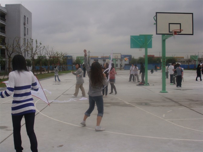 11月11日中午11时,在我校新篮球场上举行了“喜迎世博,放飞梦想”风筝放飞活动。这次风筝放飞活动是由院学生会主办,各系学生分会协办,全校师生都可参与。阳光普照下,各系宣传部的工作人员们为布置现场忙碌着。一刻钟后,活动开始了。天空上的风筝迎风飞舞,操场上更是热闹非凡。