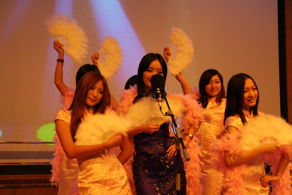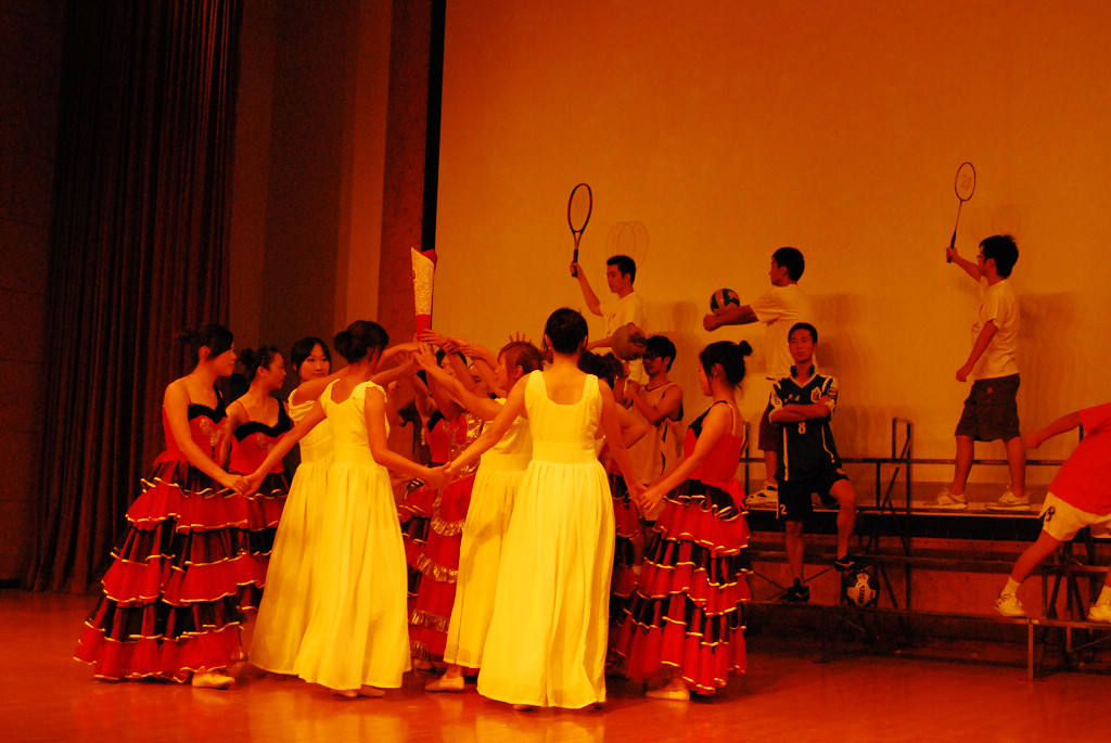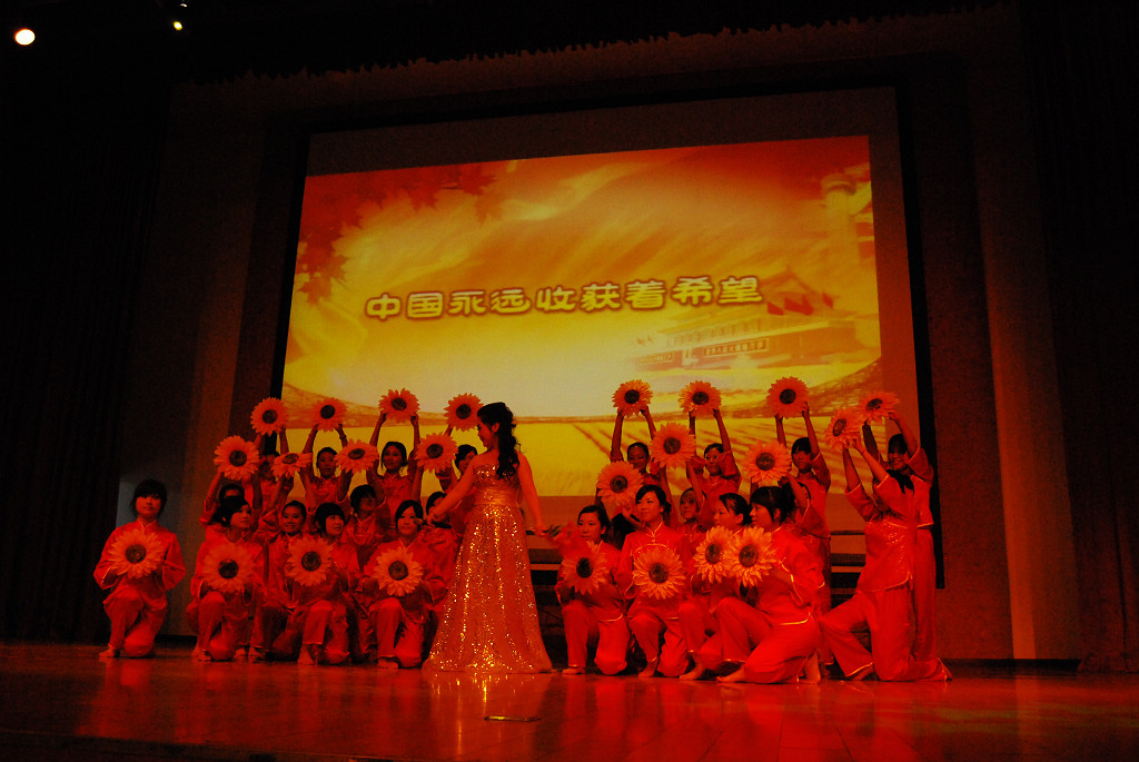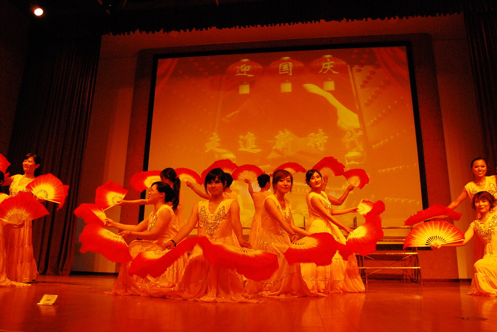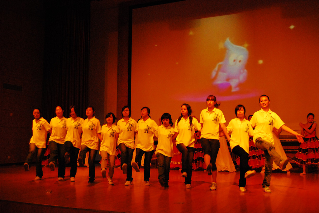 祥和普州,与国同庆六十载奋斗创业,一甲子春华秋实。伟大的中华人民共和国迈着雄健的步伐,走过了60年光辉历程,迎来了60华诞。9月25日下午,“祥和普州,与国同庆”上海中侨职业技术学院喜迎建国60周年文艺汇演在学院综合B楼四楼大礼堂隆重举行。本次汇演由学院工会、团委、妇工委、青联、学生会共同主办。学院董事长严红娟女士,学院党总支书记、院长潘日芳教授,康桥镇人民政府副镇长王建宏,学院创始人之一、原院长童宪刚教授等学院领导与嘉宾,以及800多名师生共同观看了精彩的文艺汇演。建桥学院、上师大天华学院、立达学院、欧华学院等兄弟学校负责人也应邀观看了文艺汇演。文艺汇演的第一篇章“炮火的洗礼”,以一段可歌可泣的历史壮歌为主题。旗袍秀《风华年代》和歌舞情景《繁华上海》仿佛将我们带回来了30年代的旧上海,繁华都市,歌舞升平。大合唱《毕业歌》、《保卫黄河》,挥舞大刀的《浴血奋战》展现了当年烽火硝烟的战场上无数中华儿女不畏牺牲,用热血铸就了新中国的感人画面。文艺汇演的第二篇章“新中国的诞生”,以各族人民团结奋进共创新中国为主题。难忘60年前,五星红旗在天安门广场上冉冉升起的那一刻,神州大地和华夏各民族从此迈进了历史的新纪元。人们跳起秧歌,敲起锣鼓,《解放区的天》凤凰涅槃,欢天喜地。一曲《中国永远收获着希望》,唱出浴火重生后的生生不息,播种着理想,憧憬新中国美好的未来。文艺汇演的第三篇章“沧海化桑田”,以改革开放经济飞跃发展为主题。配乐诗朗诵《春天的故事》歌颂了党的十一届三中全会后,改革开放的春风掀起神州大地发展的浪潮,推动着中国进入一个崭新的时代。扇子舞《走进新时代》舞出了对祖国的爱,舞出了对新中国美好生活的祝福。文艺演出的第四篇章“为中国喝彩”,以圆梦北京奥运会和喜迎上海世博会为主题。歌舞《奥运畅想》再现中国人民实现百年奥运梦想的历史时刻,跳动的海宝伴着动感的音乐带着我们喜迎《青春世博》,共同寄予对2010上海世博会的美好期待。歌舞《红旗飘飘》将整个文艺汇演推向高潮,台上的演员和台下的观众和着优美得旋律,手舞鲜艳的五星红旗,大礼堂内汇成了一片红色的海洋。文艺汇演结束后,校领导和嘉宾登台与全体演员和观众一起齐唱《歌唱祖国》。中侨师生以奔放的歌舞抒发满腔豪情,祝福伟大祖国美好明天。