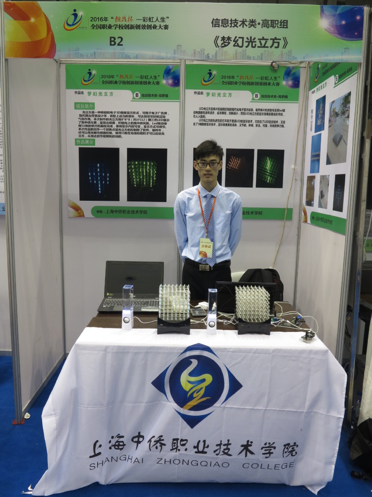 董曾杰,共青团员,2015年9月进入上海中侨职业技术学院信息技术系2015级计算机应用专业学习。目前主要从事物联网技术与应用的制作和研发。2016年,在上海举行的2016“挑战杯--彩虹人生”上海市职业学校创新创效创业大赛上,董曾杰带领他的团队和作品《梦幻光立方》脱颖而出,荣获上海市一等奖,并在福州举行的该赛事全国决赛中荣获全国二等奖。他也参与了全国职业院校技能大赛高职组“物联网技术应用”团队训练,该团队最终荣获全国职业院校技能大赛二等奖。