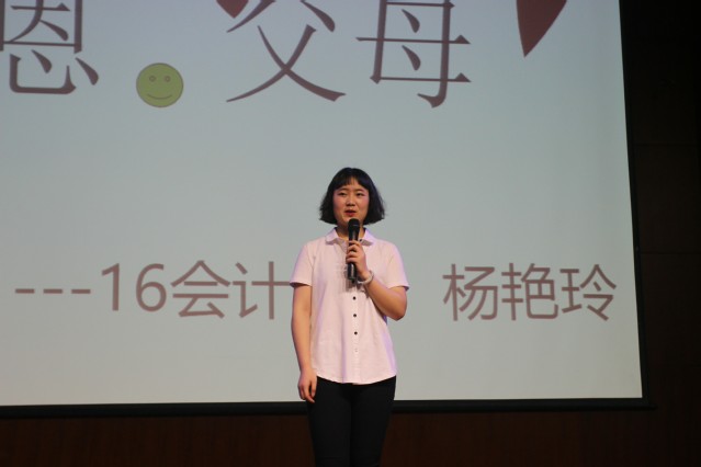 杨艳玲同学用优美的语言和真挚的感情阐述了父母的艰辛和时光的流逝,向所有同学发出了感恩父母号召。