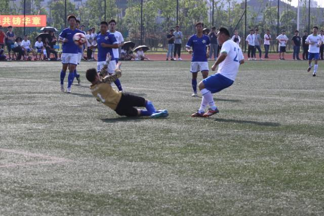 开场后,我方在十分钟左右就获得头彩,我方从后场大脚开到前场右边入,突破,然后下底传中传给了中路,中路队员杨曙光一记精彩的凌空抽射破门。对方不甘示弱,一鼓作气,随后也进了一球,每次进球,双方的各位都会予以欢呼和掌声。此后一场拉力战就此展开,每个球员都卯足了劲,在球场上挥洒热情的汗水,风采尽在足下。