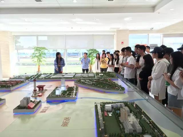 同学们首先参观了中国商飞“一个总部、六大中心”整体布局沙盘。上海飞机制造有限公司浦东基地占地4000亩,2011年起建。已建成使用的有工程技术楼,零部件生产区,飞机生产区、总装车间,预留的浦东机场第五跑道等。
