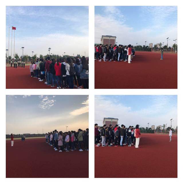 规定时间未到,护理与健康学院全体师生已经排着整齐的队伍,等待升旗仪式的开始。在师生的注视下,英姿飒爽的国旗护卫队队员们护送着鲜艳的五星红旗踏着整齐的步伐进入操场。伴随着庄严而神圣的《中华人民共和国国歌》,五星红旗冉冉升起,迎风飘扬。在场的每个师生向国旗行注目礼,深怀对祖国无限的热爱和崇高的敬意。