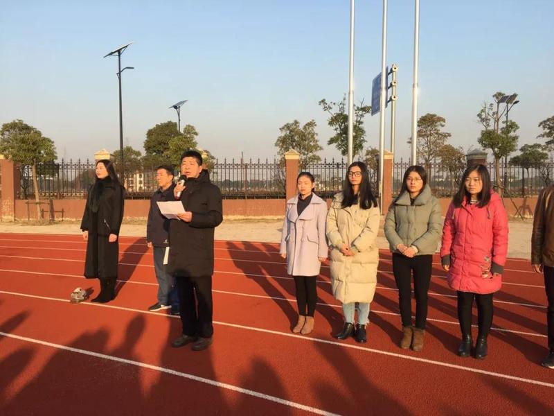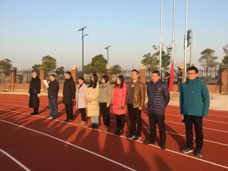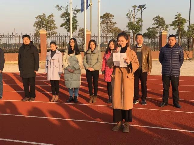 早上7:30,同学们不畏严寒队伍整齐,面向升旗台排队站好。随后国旗护卫队踏着整齐的步伐护送国旗入场,伴随着庄严嘹亮的国歌声国旗冉冉升起,全体师生凝视着迎风飘扬的五星红旗,心怀崇敬与自豪。