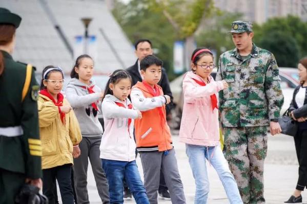 教官们为小队员讲解了国旗的历史、含义,《国旗法》的要求等仪式的规范。指导的小队员们进行分组训练,从立正、稍息、到踏步、起步、正步等规范的动作。训练结束教官还给小队员颁发“小小国旗班”毕业证书。