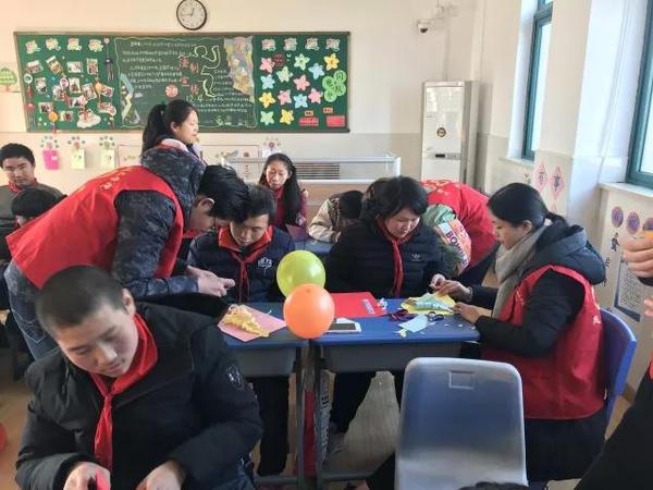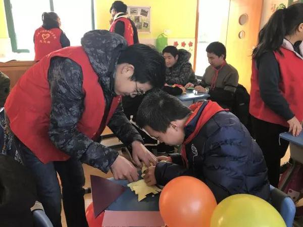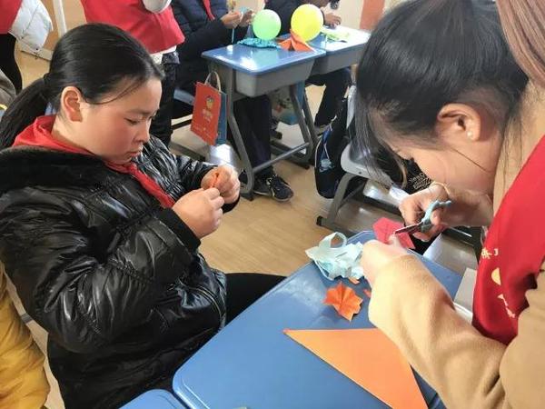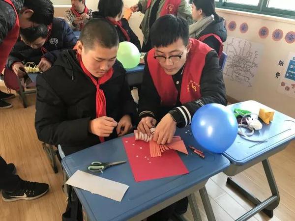 他们虽然有着不同的缺陷,但是看见我们教他们折圣诞树,都在不停的与我们一起做那些对于他们来说比较陌生的东西,都很积极地参与,问我们那个东西怎么折。他们通过自己的努力改变着自己的缺陷。