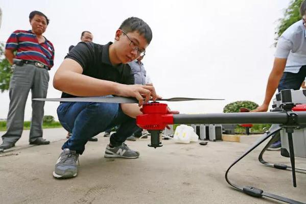 在众人的期盼和怀疑中,罗鞘和他团队的几名成员一起做着最后的准备,他们架起设备,一边对即将要进行喷洒试验的田地测量面积,一边对无人机上的喷头和药量进行最后的调试。“无人机应用到农业对精准度有很高的要求。”正在仔细检查设备的罗鞘说,“药量的控制、飞行线路和速度等都要按照实际需要进行调节,要尽可能准确,控制不好就可能会对农作物造成不良影响,让农户遭受损失。