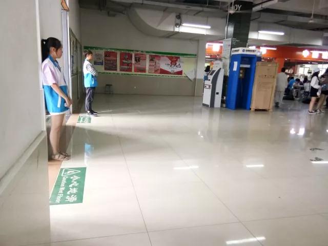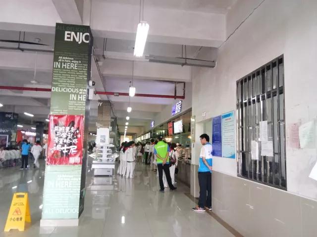 志愿者在食堂维持秩序