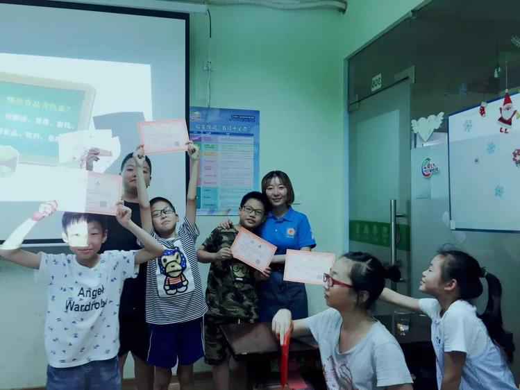 为积极落实市政府实事项目“小学生爱心暑托班”工作。奉献青春力量,上海中侨学院的志愿者于7月3日起在全市各个爱心暑托班教学点开展志愿服务。食品学院和瑞莱新侨食品有限公司合作,首次组织志愿者结合食品安全专业开设《食品安全健康教育》课程,通过对日常食品中添加剂色素,教小朋友学会辨别饮料和糖果等零食的色素添加,使每个小朋友都成为一名“小小的首席质量官—初级质量官”。