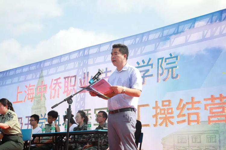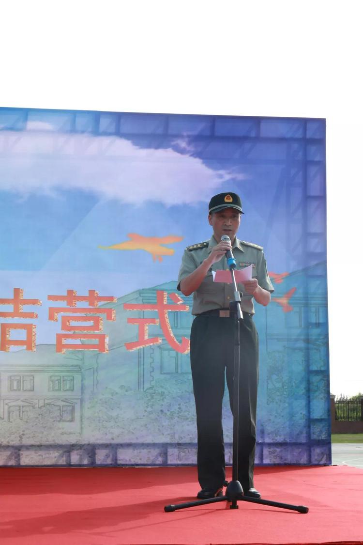 金山区人武部副部长戚良宏在仪式上讲话。他指出,希望同学们在即将开始的三年大学生活中,用军训中所锤炼出来的那种坚强的精神、顽强的毅力和严格的组织纪律性,一步一个脚印,扎扎实实走好大学三年之路,让军训成为大学三年所迈出的坚实的第一步。