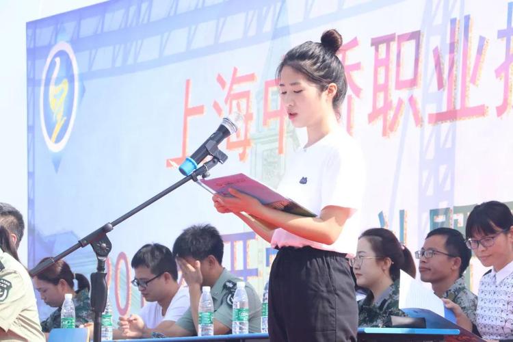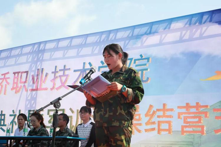 金山区人武部副部长戚良宏在仪式上讲话。他指出,希望同学们在即将开始的三年大学生活中,用军训中所锤炼出来的那种坚强的精神、顽强的毅力和严格的组织纪律性,一步一个脚印,扎扎实实走好大学三年之路,让军训成为大学三年所迈出的坚实的第一步。