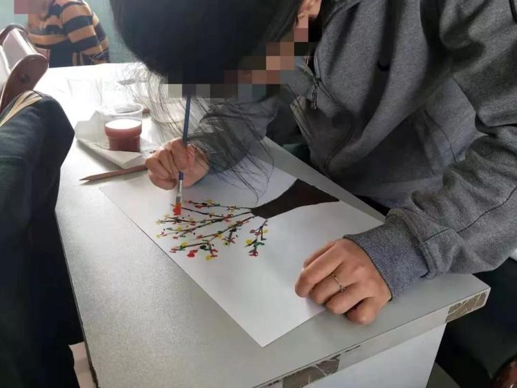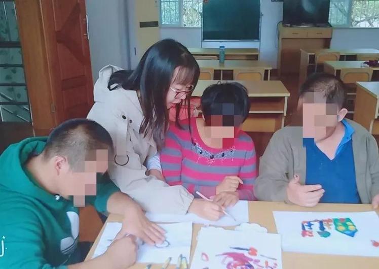 每次上课的学员有二十多个,拇指画经过第一节课的范画引导,第二节课让同学们自由发挥。培养他们的兴趣,激发对色彩的热爱,享受创作的过程。短短一节课一个半小时的时间,我与他们在交流过程中也培养着友谊,尽管他们是特殊人群,但也一样有着自己的思想和情感。部分学员在绘画过程中觉得自己不会就迟迟不愿在纸上画,她们需要鼓励,需要培养自信,在课堂上经过引导与示范,也能看到他们进步的足迹。也有部分学员在绘画过程中过于浪费颜料,在这样的情况下我会站在他们的特殊角度上理解他们,并且多次提醒。