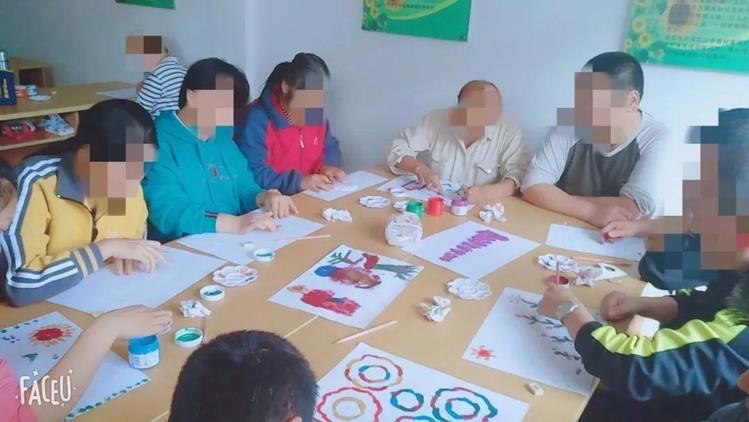 近几年来,区委、区政府为减轻智障人士的家庭负担,提高他们的社会适应能力,在全区成立了“阳光之家”,组织智障人士参与培训、康复、简单劳动等。上海中侨职业技术学院艺术学院组建的“美丽乡村”志愿者服务队,积极来到阳光之家为智障人士带来艺术体验活动,通过艺术教育,增加特殊人群的色彩认知、手眼协调、创造力和想象力,让他们建立信心、走出家庭、融入社会。