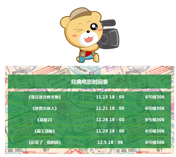 放映地点:6号楼306