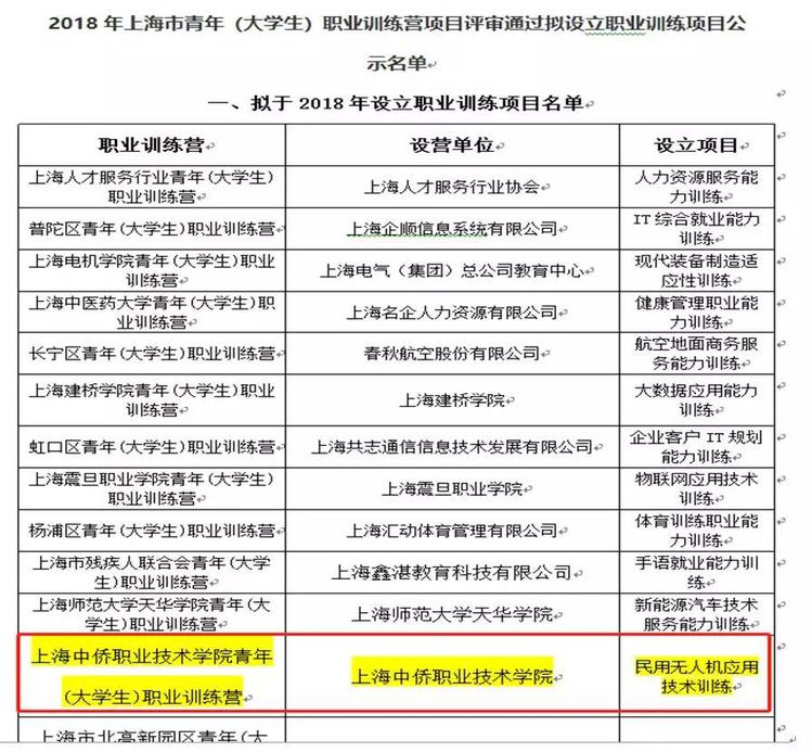 上海市青年(大学生)“民用无人机应用技术训练”职业训练营