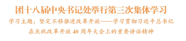 他强调,全团要深入学习领会习近平总书记在庆祝改革开放40周年大会上的重要讲话精神,切实增强继续推进改革开放的思想自觉和行动自觉,大力激发广大团员青年投身新时代改革开放伟大实践的奋斗热情,以勇于自我革命的精神坚定不移推进共青团改革再出发。