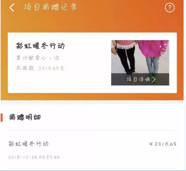 本次“暖冬义卖”活动共筹集善款2310.65元,现已全部交由“彩虹暖冬行动”完成后续的捐赠任务。他们将会为云南偏远山区的819位贫困儿童送去毛毯、棉衣及棉鞋等御寒用品,让他们的冬天不再寒冷,能温暖的度过整个冬天。