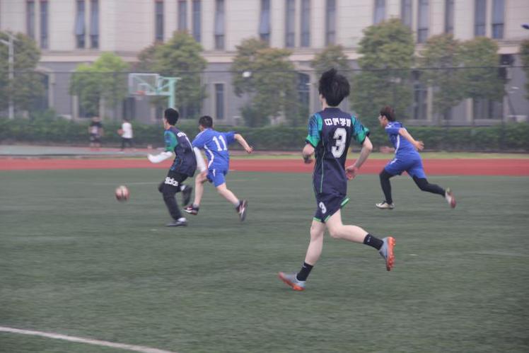 食品学院利用篱笆战术,团队合作特别融洽!传球,配合,射门看的全场观众热血沸腾。