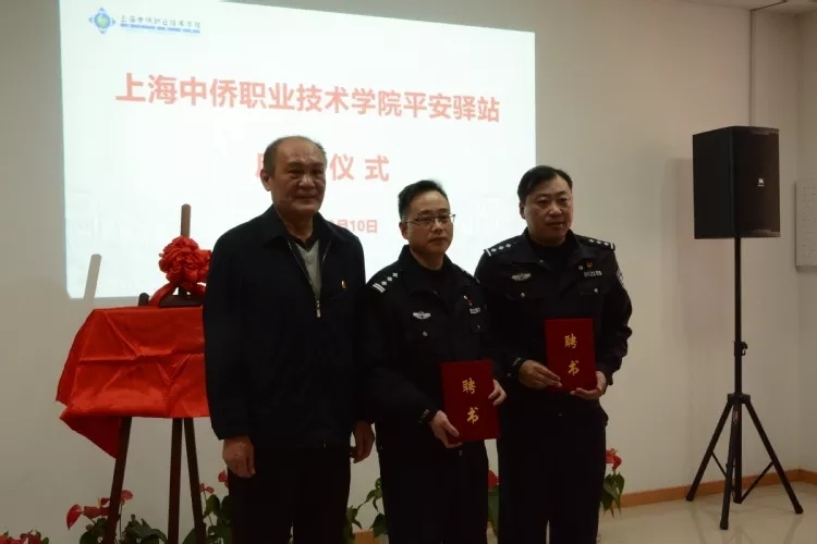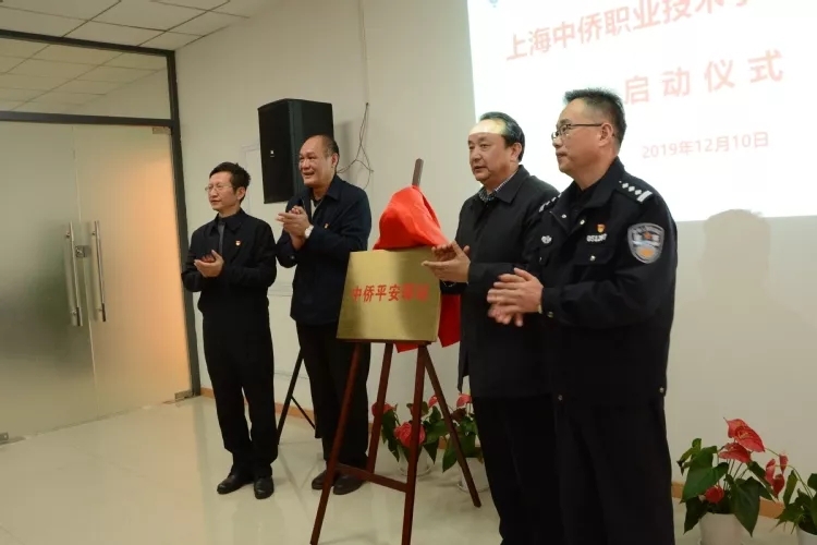 为认真贯彻落实党的十九届四中全会精神,巩固提升“不忘初心、牢记使命”主题教育成果,进一步完善校园治理体系,维护校园安全稳定。上海中侨职业技术学院与属地张堰派出所、张堰镇政府社会稳定办三方联动,整合各类资源,于2019年12月10日下午,在中侨学院图文楼108创新设立“中侨平安驿站”。校长陈晓斌、党委书记平杰、副校长罗宁,张堰镇党委副书记沈益权、张堰派出所所长朱梅忠、副所长马秋欢、张堰镇司法所所长孙艳、张堰镇综治办主任朱伟,金山分局治安支队徐旭峰及相关师生出席启动仪式。