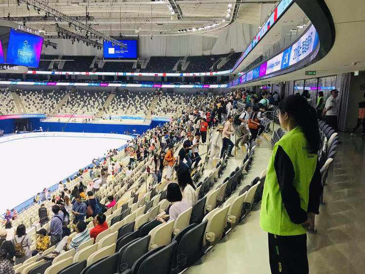 2019国际滑联上海超级杯短道速滑及花样滑冰、队列滑大奖赛在东方体育中心举行。中侨青年志愿者再次亮相,助力花滑赛事成功举办。