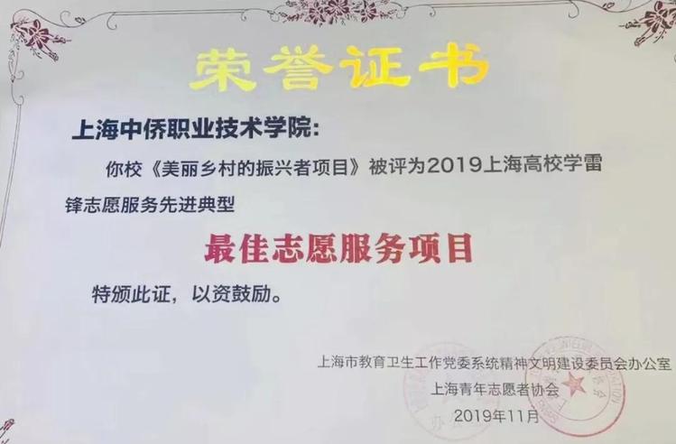 “美丽乡村”志愿服务队继上次荣获2019首届“知行杯—青春社区”十大项目之后,再次荣获上海高校学雷锋先进典型“最佳志愿服务项目”。我们将继续讲好新时代中侨雷锋的故事。以青春之我,贡献青春智慧,让奉献之我,在祖国的发展中不断成长。