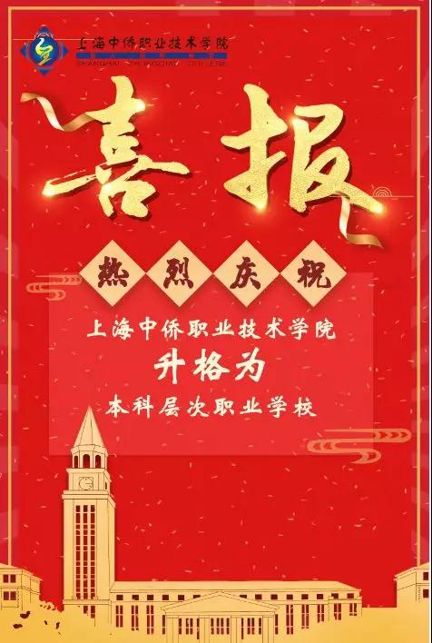 近日,教育部已同意上海中侨职业技术学院开展本科层次职业教育试点, 目前学校暂定名为“上海中侨职业技术学院(本科)”,这标志着我校正式升格为本科层次职业学校。成为上海市首家也是目前唯一一个本科层次职业教育学校。