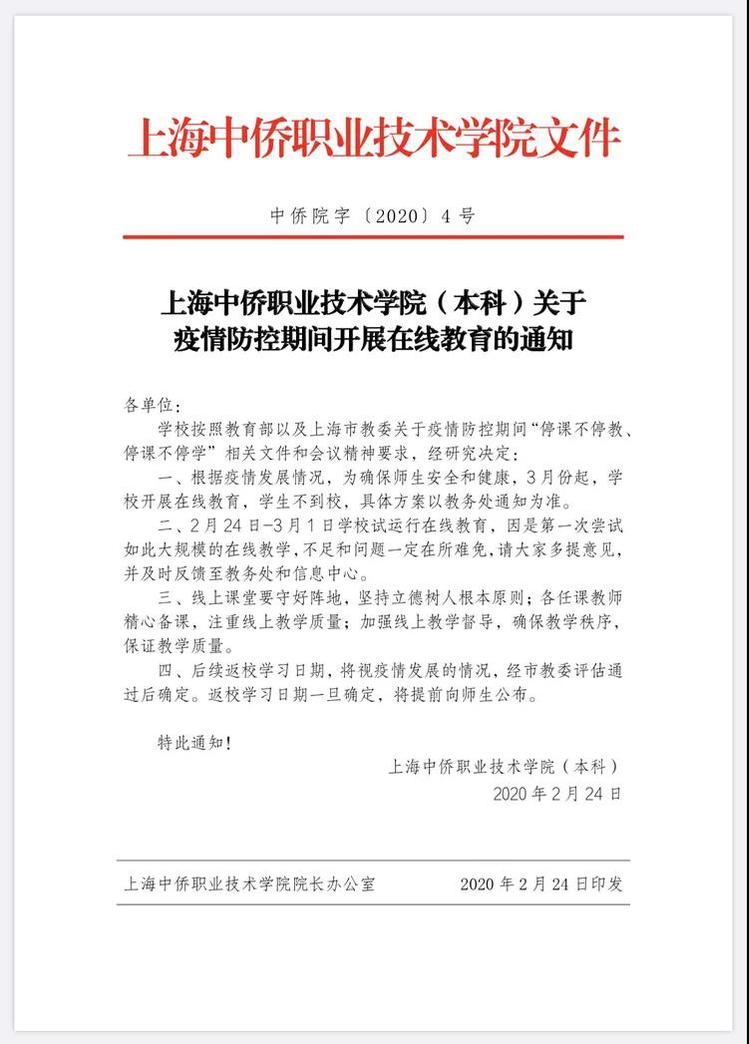 学校按照教育部以及上海市教委关于疫情防控期间“停课不停教、停课不停学”相关文件和会议精神要求,经研究决定: