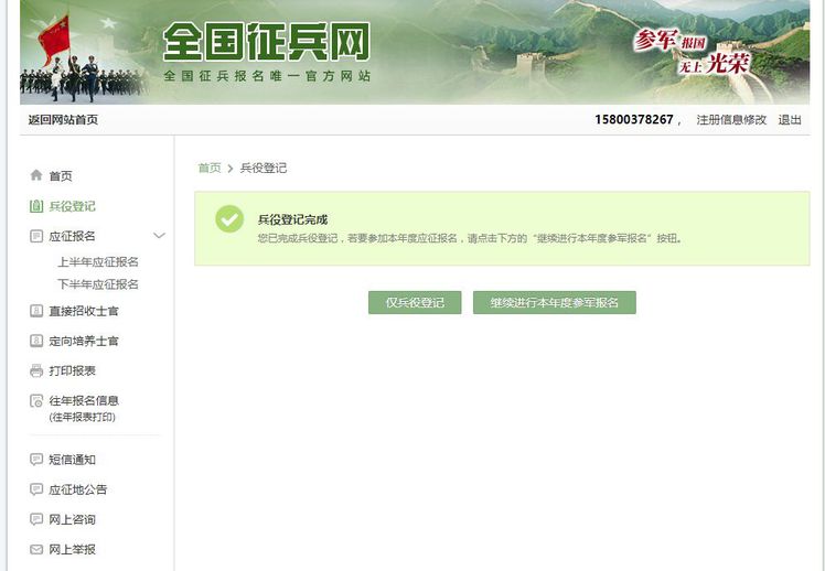 七.完成兵役登记,点击“仅兵役登记”。