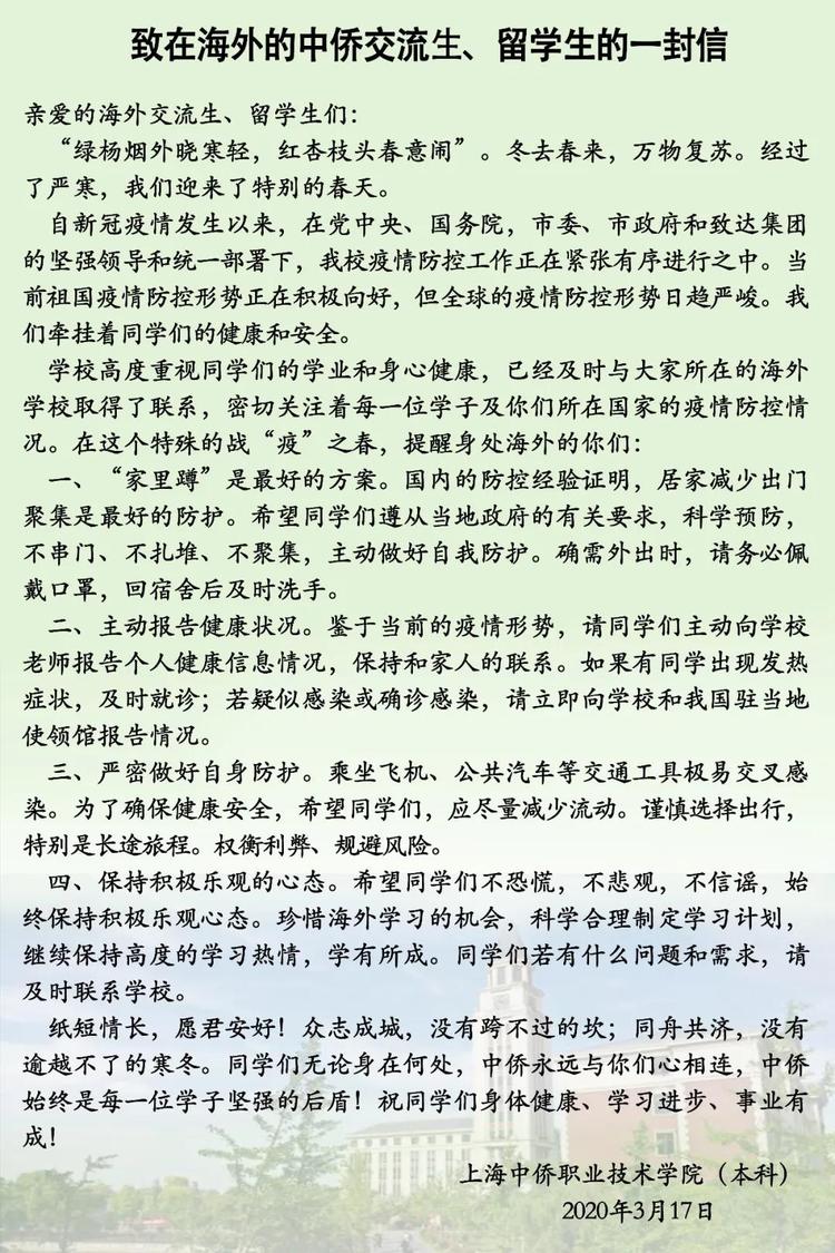随同寄送的还有《致在海外的中侨交流生、留学生的一封信》,叮嘱他们做好防护,保持积极乐观的心态。