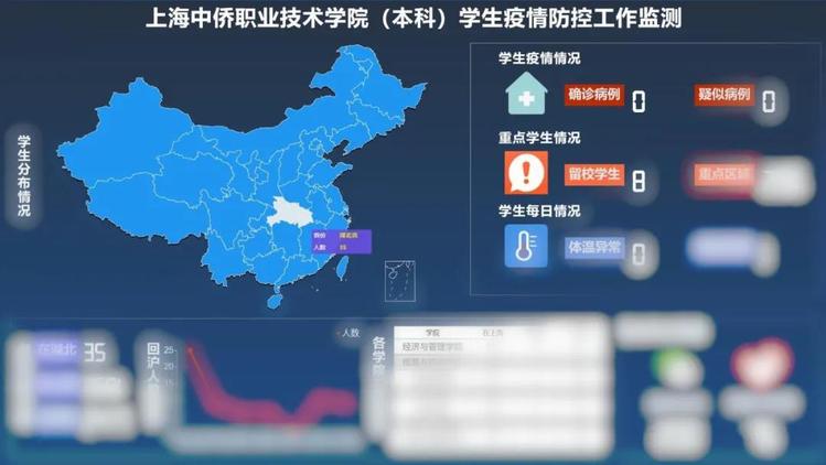 “有多少学生在隔离观察?”“毕业班学生有多少返沪的,就业工作如何推进?”。依托数据屏和每日沉淀的数据,随时筛选和调取相关信息,并对数据进行整合。相关部门通过数据分析和研讨,合理设计工作任务,促进学校疫情防控和学生管理服务工作的科学决策、精准施策和快速反应。