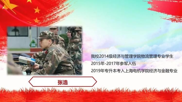 宣讲会邀请了我校优秀退伍学生代表,成功考取专升本的19届物流管理专业校友张浩、成功考入上海公安的19届汽车专业校友沈恺毅和18级园林专业学生、2019年上海市奖学金获得者徐惠岚相继进行了发言,分享了自己参军入伍的心得感悟和复学回校之后的职业发展规划。