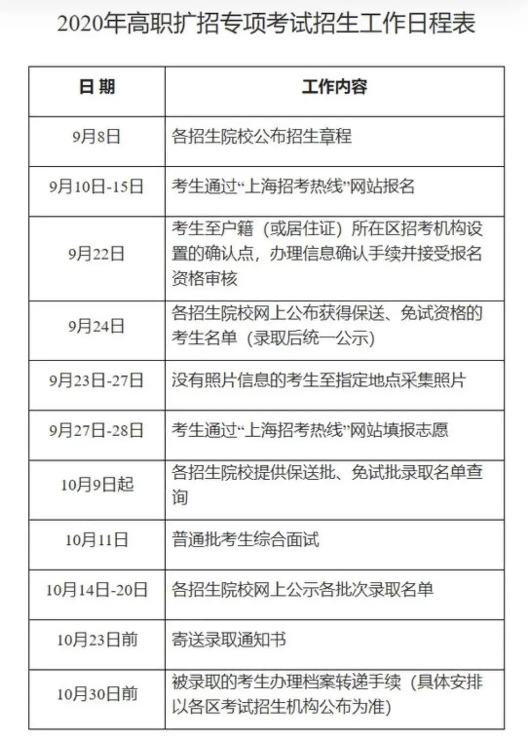 符合《上海市教育委员会关于做好2020年上海市普通高校考试招生报名工作的通知》(沪教委学〔2019〕43号)和《上海市教育委员会关于做好2020年高职扩招专项考试招生工作的通知》(沪教委学〔2020〕37号)关于高职扩招报名条件规定的人员,可报考我校2020年高职扩招专项考试招生。