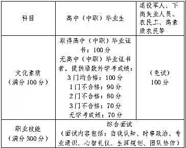 二、作为录取依据的测试总分(满分400分)=统一文化测试(满分100分)+职业技能测试组成(满分300分)。