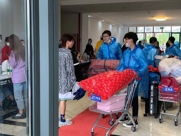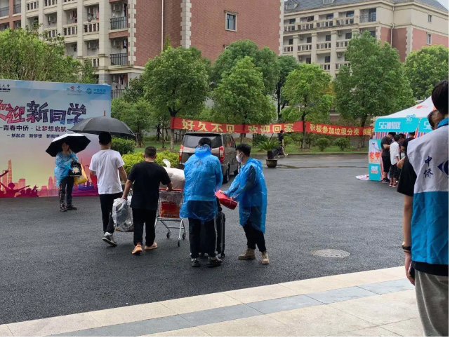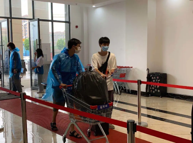 志愿者们指引学生前往宿舍