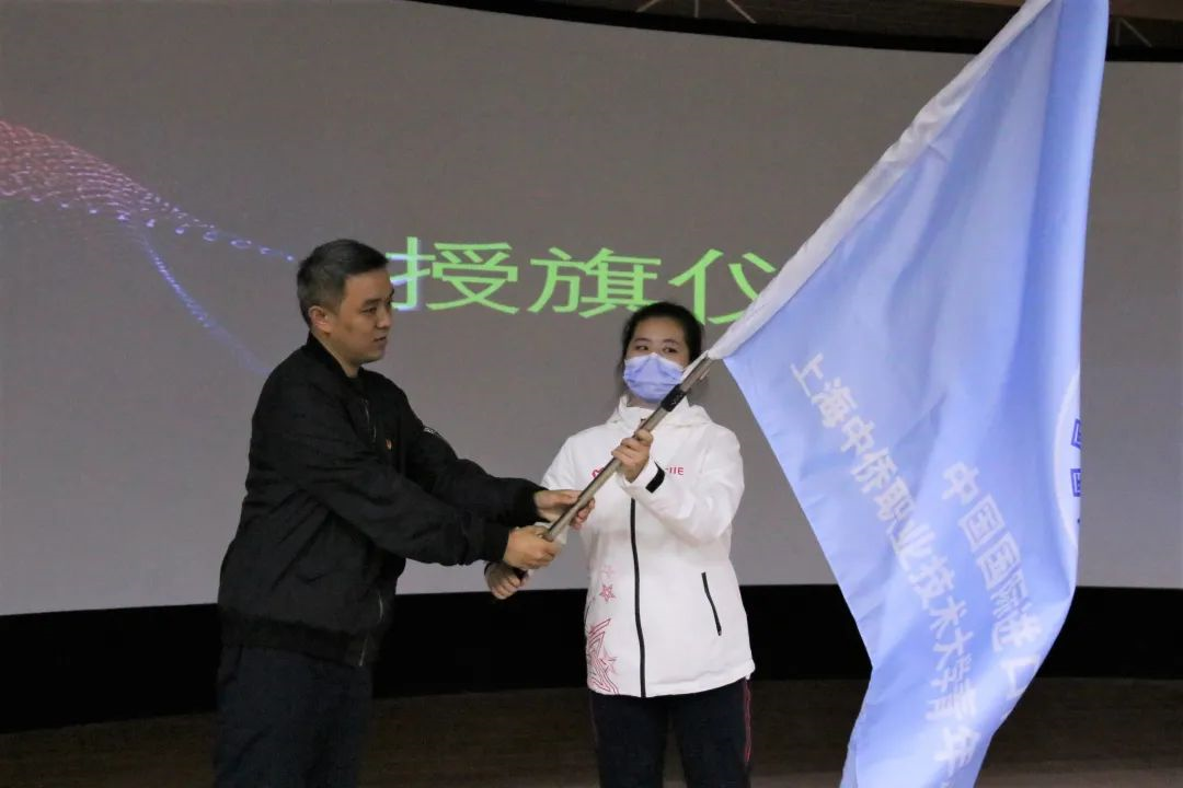 校党委委员、学工部部长朱范鑫老师为第三届进博会志愿者团队授旗并宣布出征!