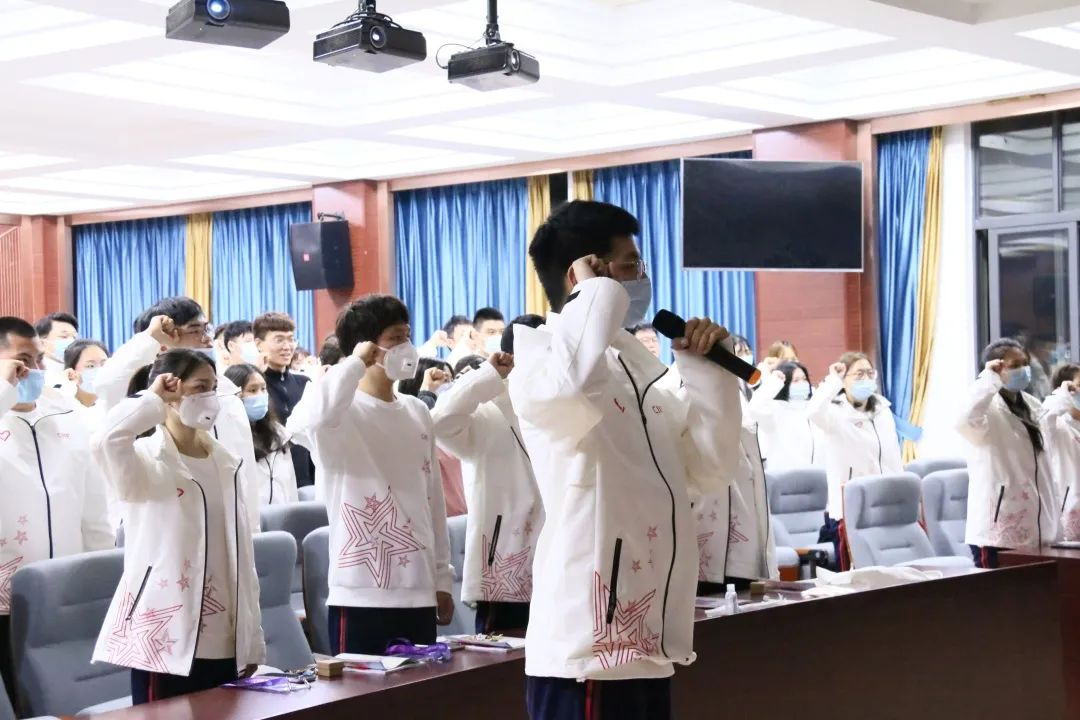 为一进步为进博会提供更优质服务,更热情的体验,11月2日晚上8时,上海中侨职业技术大学举行了第三届中国国际进口博览会决战誓师大会暨授旗仪式。来自全校100余名志愿者在报告厅参加了大会。校党委委员、学工部部长朱范鑫出席。
