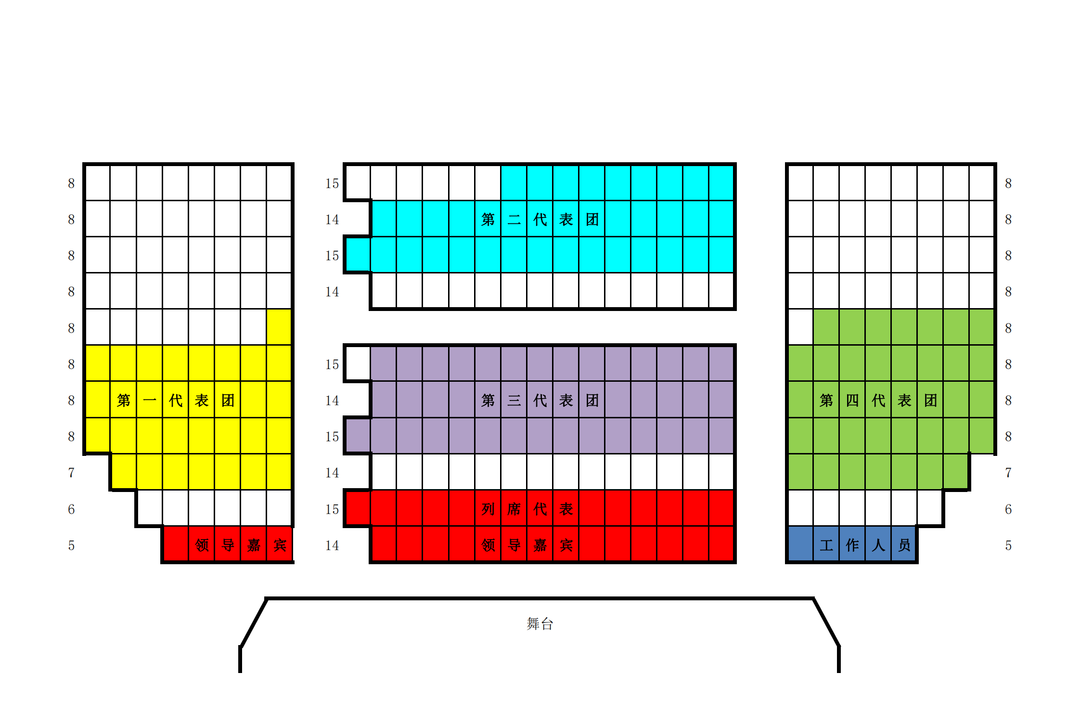 各代表团须于大会前半小时入场并由工作人员统一安排就座。