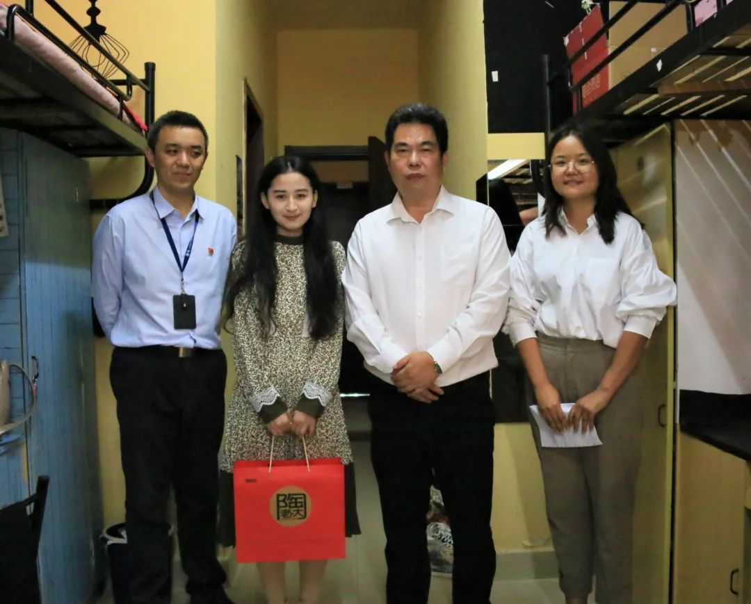 随后陈晓斌校长慰问留校的学生,亲切关心学生的学习和生活情况,并送上月饼,祝他们双节快乐,一定在学校要照顾好自己,把中侨当成自己的家,也要好好学习,矢志奋斗,成为一个优秀的中侨青年。