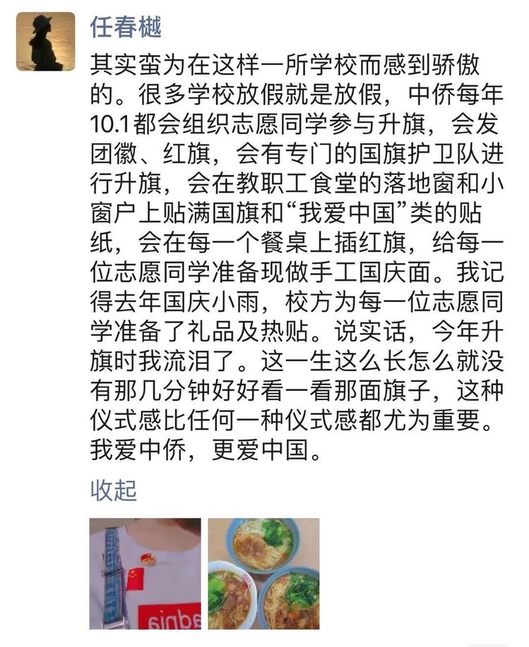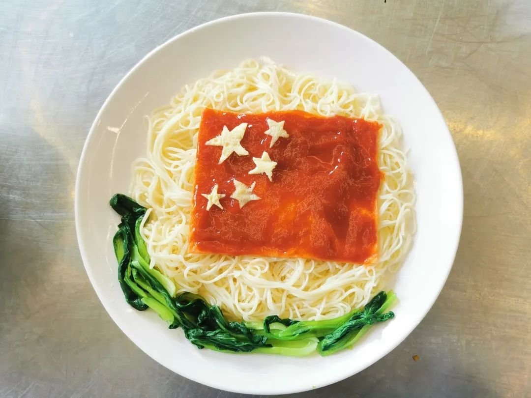 在这样特殊的时刻,我们通过升国旗向祖国表示热爱,共食“国庆生日面”来表达自己的欣喜之情,因为此刻我们都是一名中国青年。