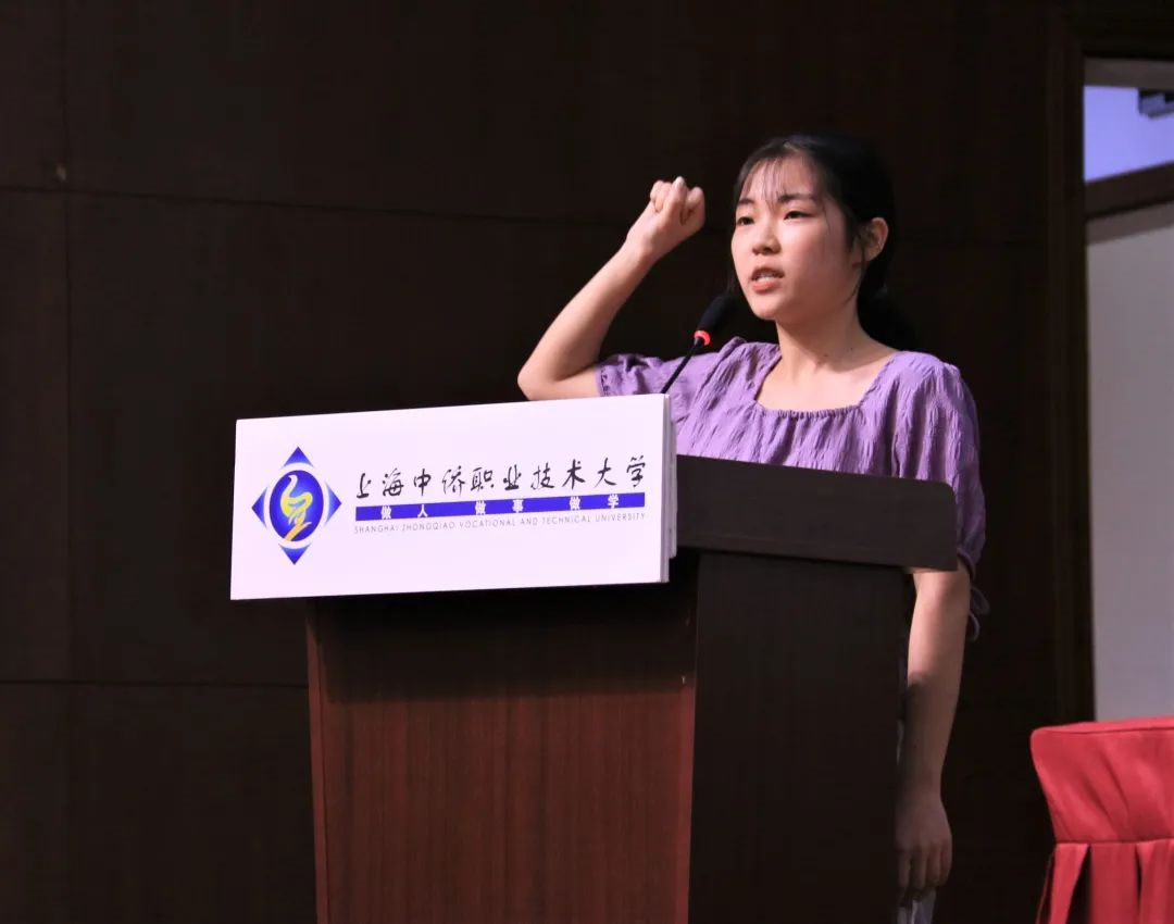 020级土木工程专升本班许张燕同学作为新生代表领誓。