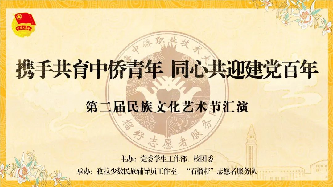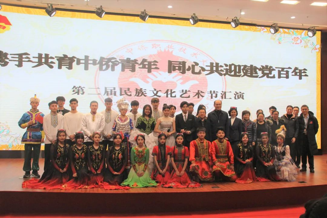 12月18日,我校举办“携手共育中侨青年,同心共迎建党百”暨第二届民族文化艺术节汇演。金山区委统战部副部长、区民宗办主任陆美观,校长陈晓斌,党委书记平杰,党委副书记、副校长管琰琰以及来自全校各青年代表近200人齐聚一堂,共同享受民族风情的视觉盛宴,共同感受血浓于水的骨肉情深,共享时代成果,共迎建党百年。