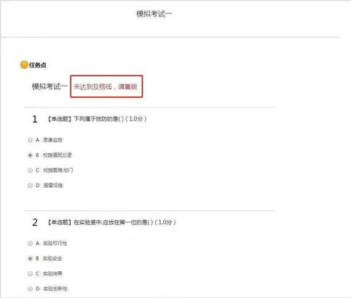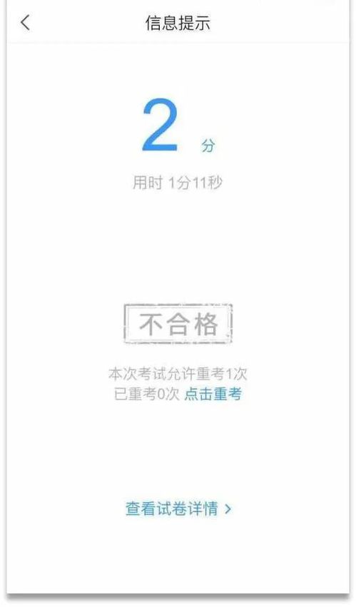 考试未通过,系统显示不及格则可以立即点击“重考”,重新进行考试。