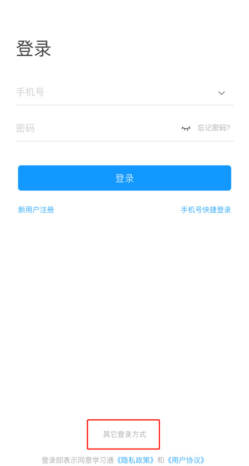 打开APP,点击左上角头像进入登录页面,选择“其他登录方式”登录。