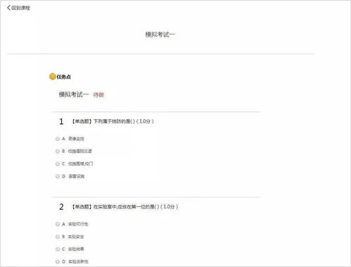 必修和选修课程学习结束后,即可进行模拟考试,点击“模拟考试一”,进入模拟考试页面。