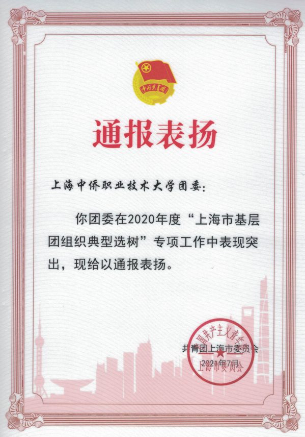 根据团市委2020年度上海市基层团组织典型选树工作安排,对标“政治建设好、组织基础好、联系服务好、作用发挥好”的选树标准,上海中侨职业技术大学团委获“2020年度上海市基层团组织典型集体”称号。