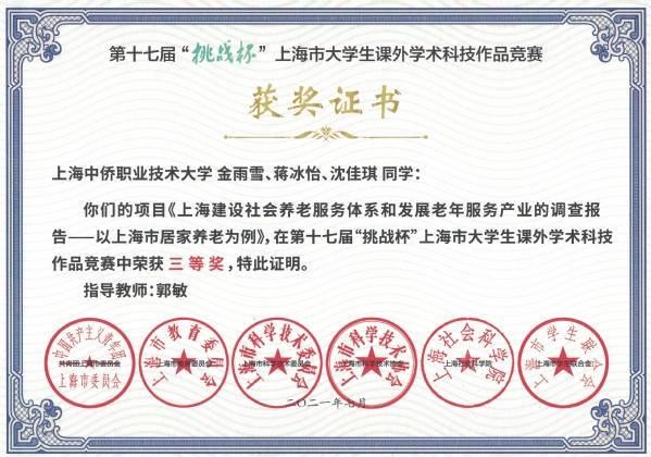 第十七届“挑战杯”上海市大学生课外学术科技作品竞赛结果揭晓,我校荣获“进步显著奖”,三个社会调研报告分获三等奖。