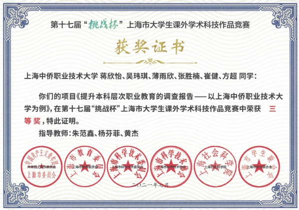 项目名:《提升本科层次职业教育的调查报告—以上海中侨职业技术大学为例》