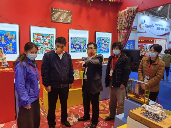 展览现场,艺术学院戴红梅书记、大师工作室负责人朱希教授、姜丹老师等还轮流互动展示,让现场观众近距离的体验农民画创作。